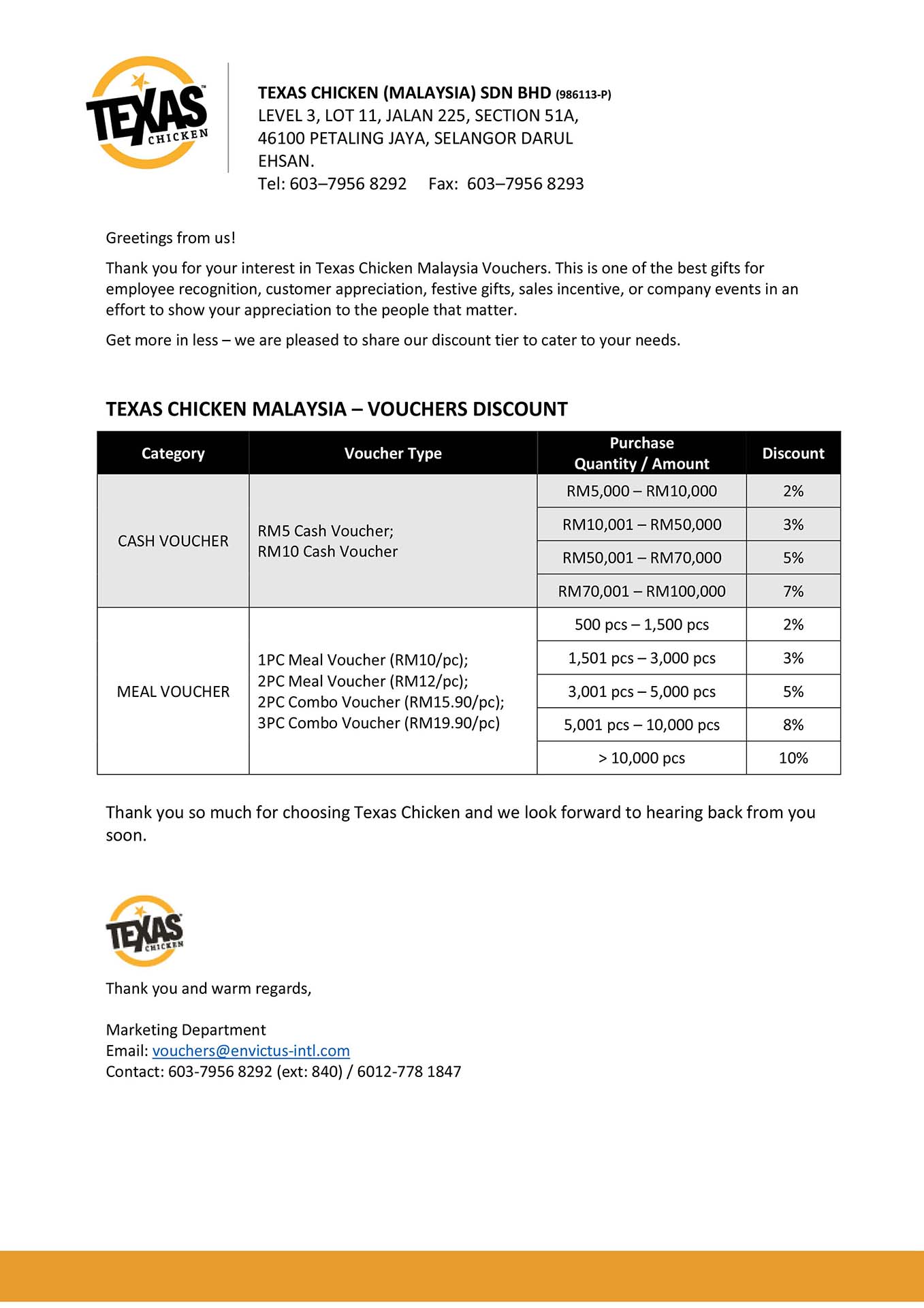 - This voucher is redeemable for any purchase at all Texas Chicken/San Francisco Coffee outlets in Malaysia.